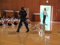 また、最後には麻薬探知犬のエレックによる実演も行われ、見事、薬物の入った荷物を探知することができました。
