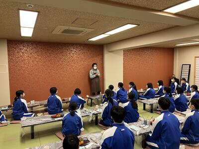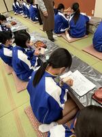 自由行動から戻って少し休憩した後、広間で絵付け体験が始まりました。